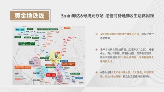 距离深圳北站交通枢纽仅3 站,三大高铁形成半小时湾区经济圈,4小时武汉、厦门经济圈,8小时京津沪经济圈;
