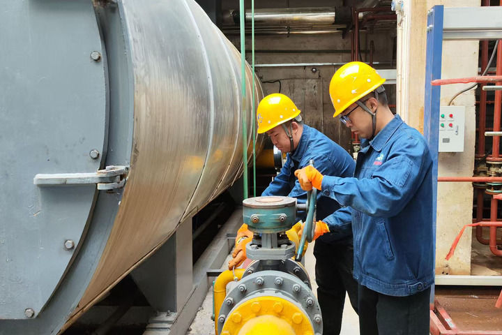 在兰州市一处供热站点,工人正在进行供热锅炉检修工作。(兰州市委宣传部供图)