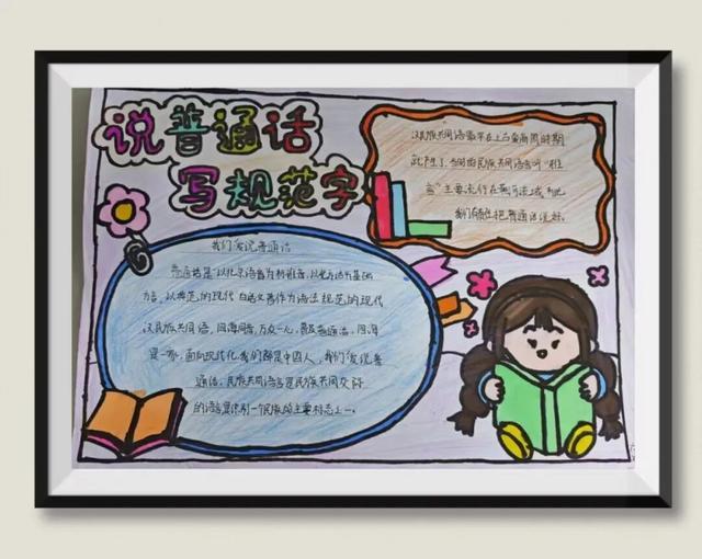一张张色彩明快的手抄报,是同学们用画笔写下的“推广宣言”。在创作中,大家不仅明白了普通话是校园里的“学习助手”;更懂得了它是连接世界的“语言桥梁”,能帮他们读懂远方的故事、认识更多朋友。这些手抄报不只是作品,更是他们愿意成为“普通话小使者”的承诺。
