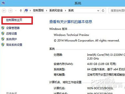 步骤2、进入这台电脑属性之后,再点击左上角的“控制面板主页”,如下图所示。